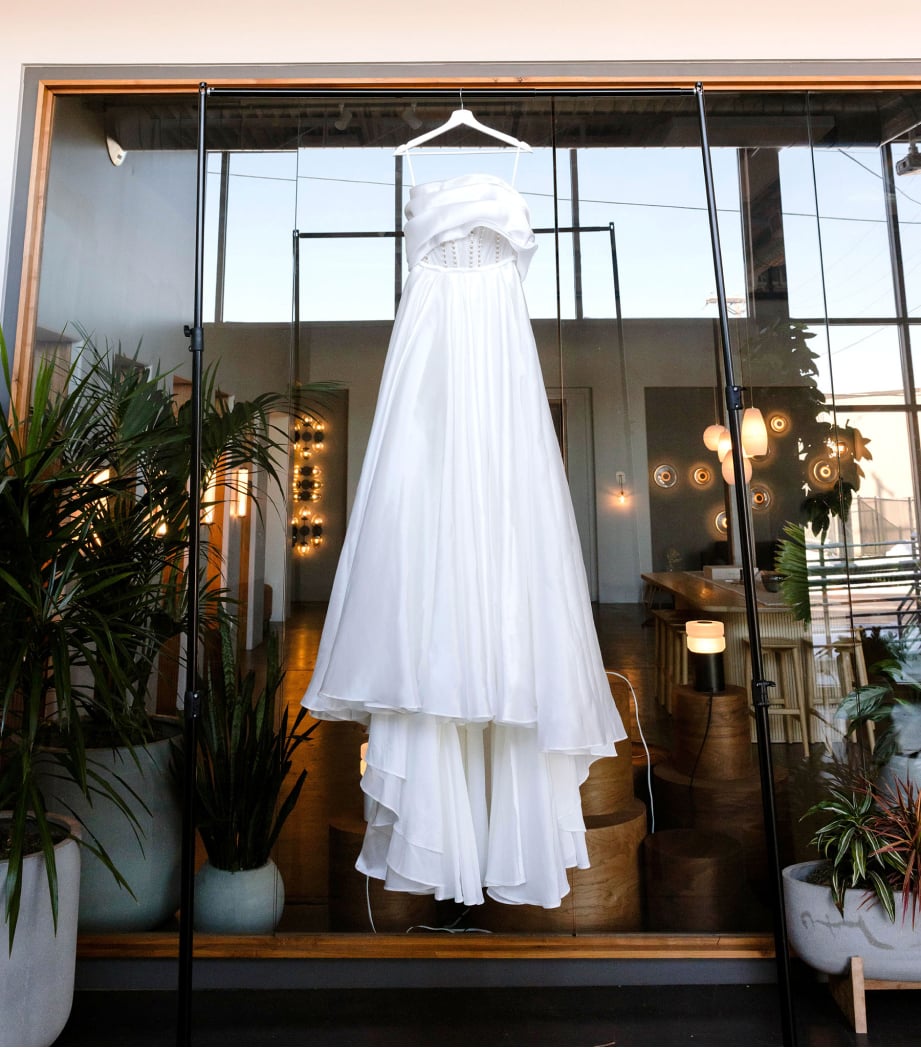 The Glass House team produced an editorial fashion bridal styled shoot all around glass. We are looking to cement our unique POV on why one ties the knot in an artisan glass blowing studio. We sought to showcase the natural features custom handblown lighting installations throughout our recently renovated Glenwood Lounge.