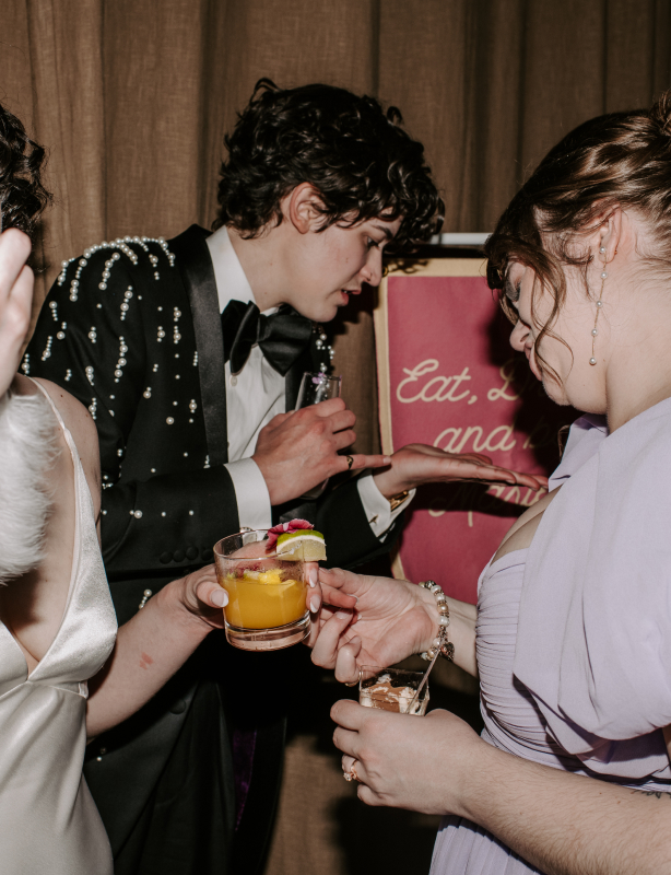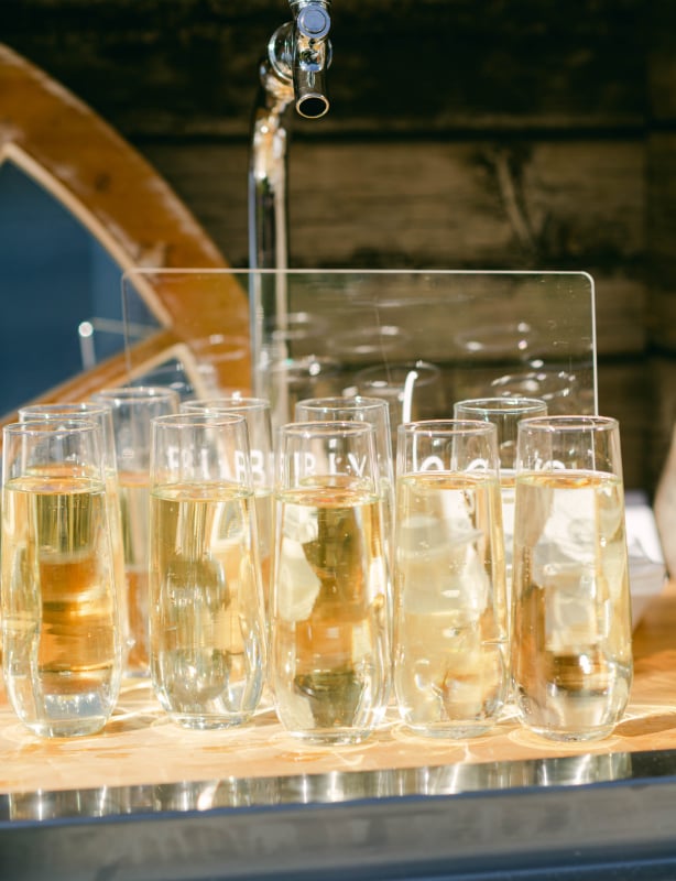We understand the importance of your wedding's color scheme, and at Glass House, we believe in taking it a step further. Matching your signature drinks to your theme creates a cohesive and stylish aesthetic. Whether it’s a vibrant blue cocktail for a seaside theme or a sophisticated gold-hued drink for a glamorous affair, coordinating your beverages with your decor adds an elegant touch to your celebration.