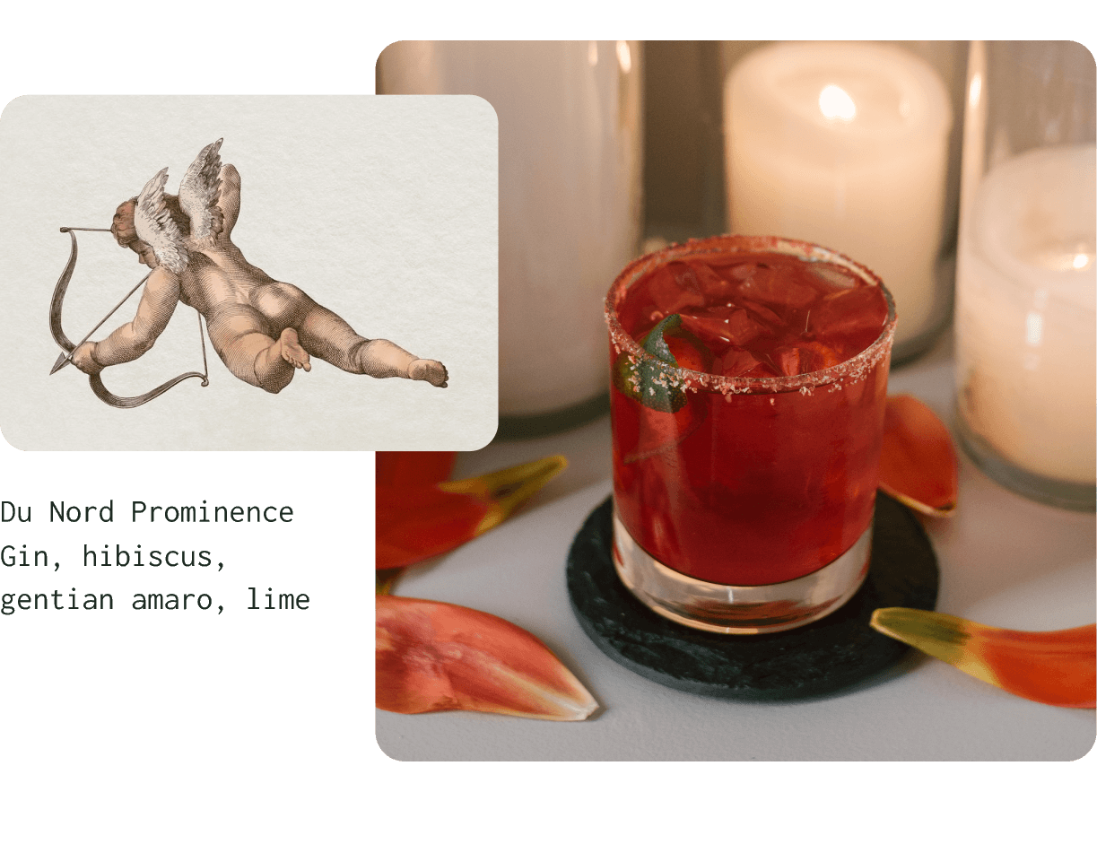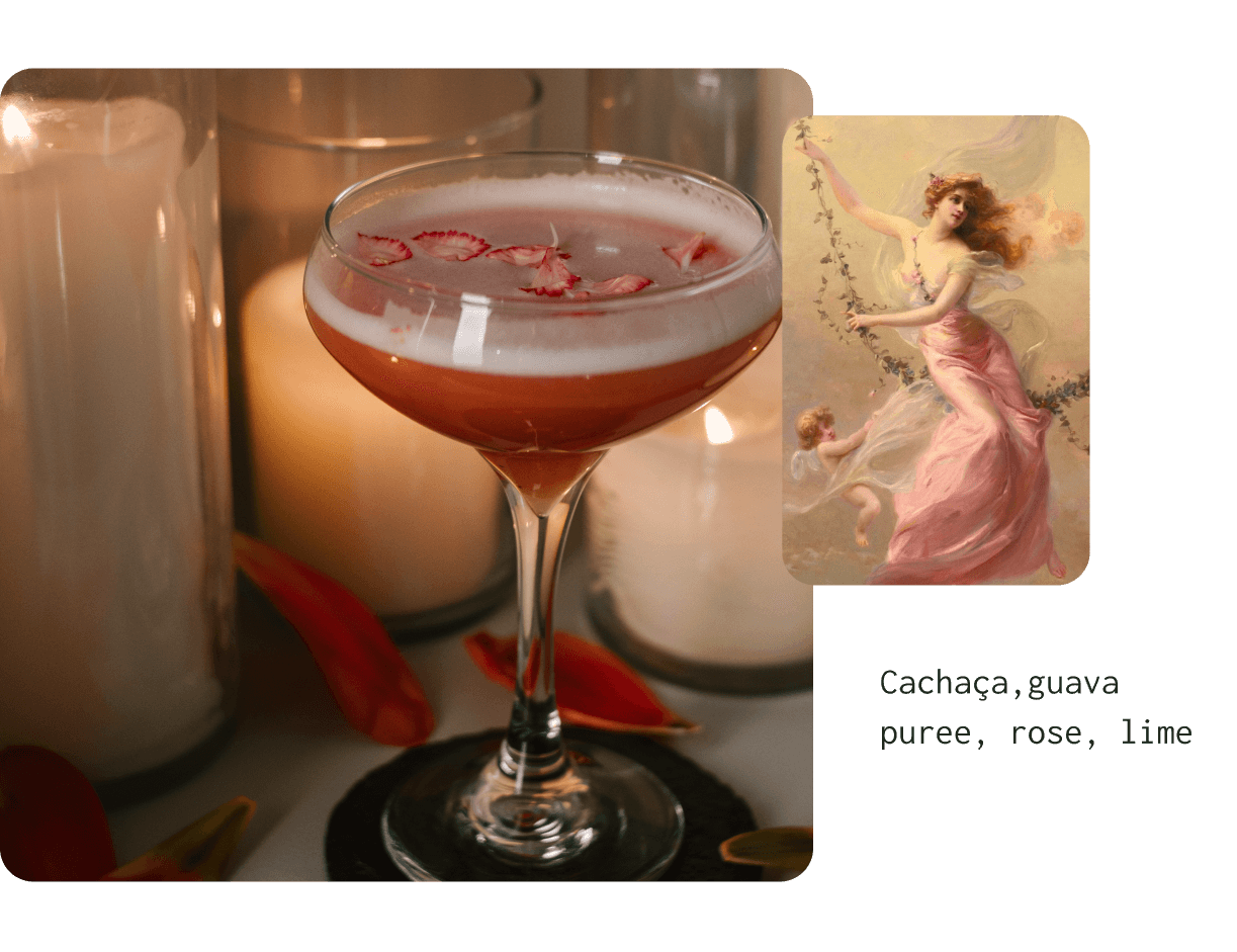 Struck by the season of love, we have crafted custom cocktails that capture the essence of beauty and romance inspired by the goddesses of love.